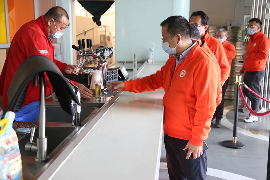 第四站:企業(yè)家們來到青島啤酒參觀青啤集團(tuán)全國最大的工廠——純生工廠。現(xiàn)場品嘗新鮮啤酒、感受百年青啤與品牌創(chuàng)新文化 、參觀國際先進(jìn)的啤酒灌裝流水線車間。