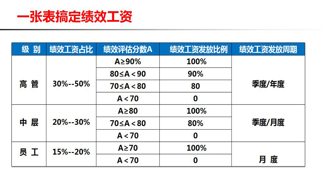 課程圍繞:優(yōu)崗、降本、增效、加薪。從全面績(jī)效管理,到平衡記分卡建立,從績(jī)效考核標(biāo)準(zhǔn),到激勵(lì)性薪酬體系設(shè)計(jì),從人工成本管控,到人效分析基本方法。李老師全面剖析企業(yè)如何將戰(zhàn)略目標(biāo)轉(zhuǎn)化為結(jié)果成效的方法。