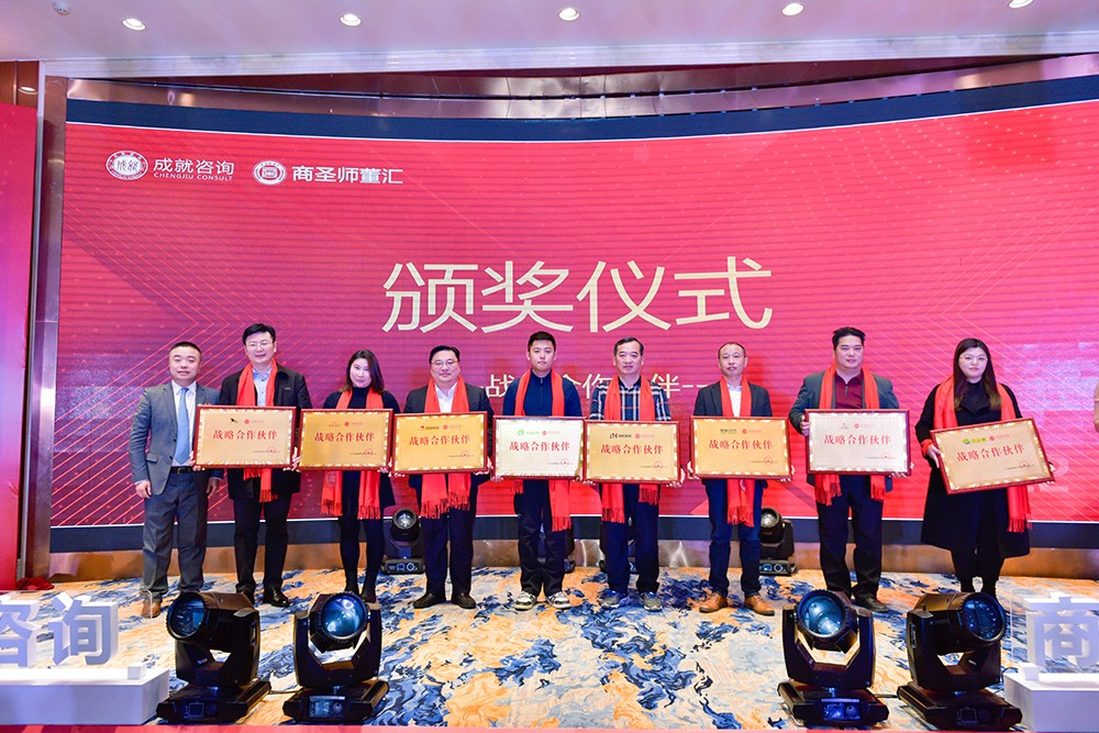 年度企業(yè)家迎新晚宴現(xiàn)場,分別頒發(fā)了“商圣師董匯榮譽(yù)主席”、“商圣師董匯秘書長”、“年度戰(zhàn)略合作伙伴”、“金牌講師” 等獎項(xiàng),并為新加入商圣師董匯成員進(jìn)行授牌。